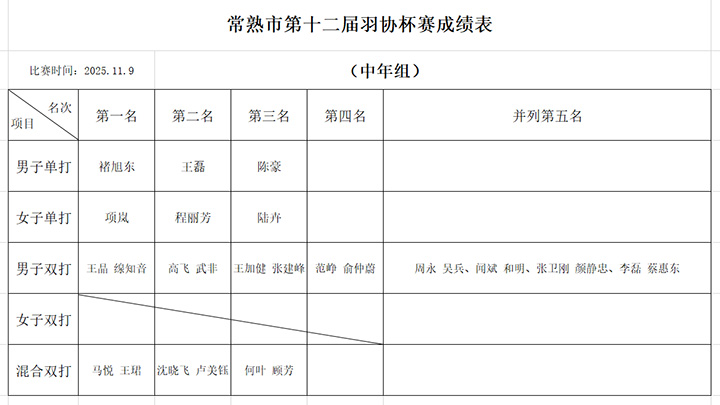 “梦之蓝M6+杯”常熟市第九届羽协杯赛成绩表