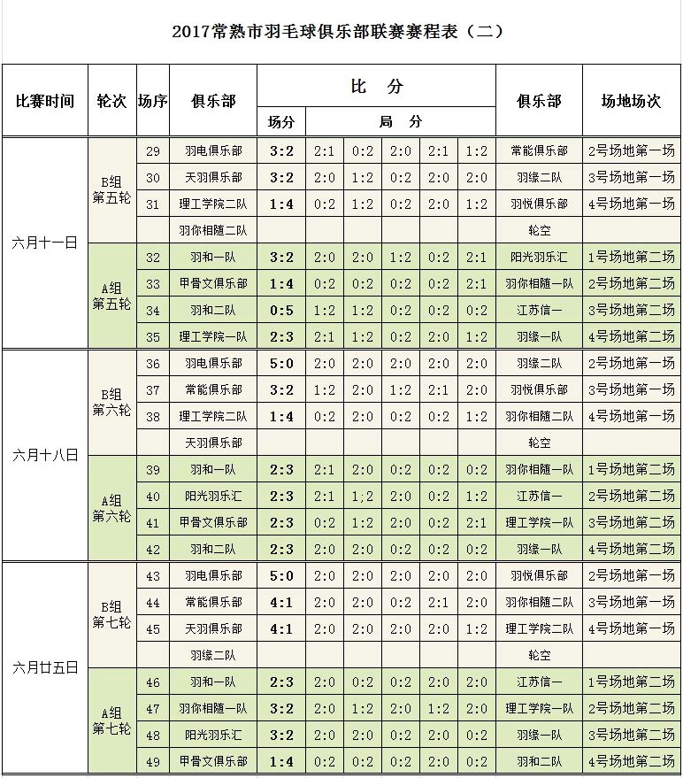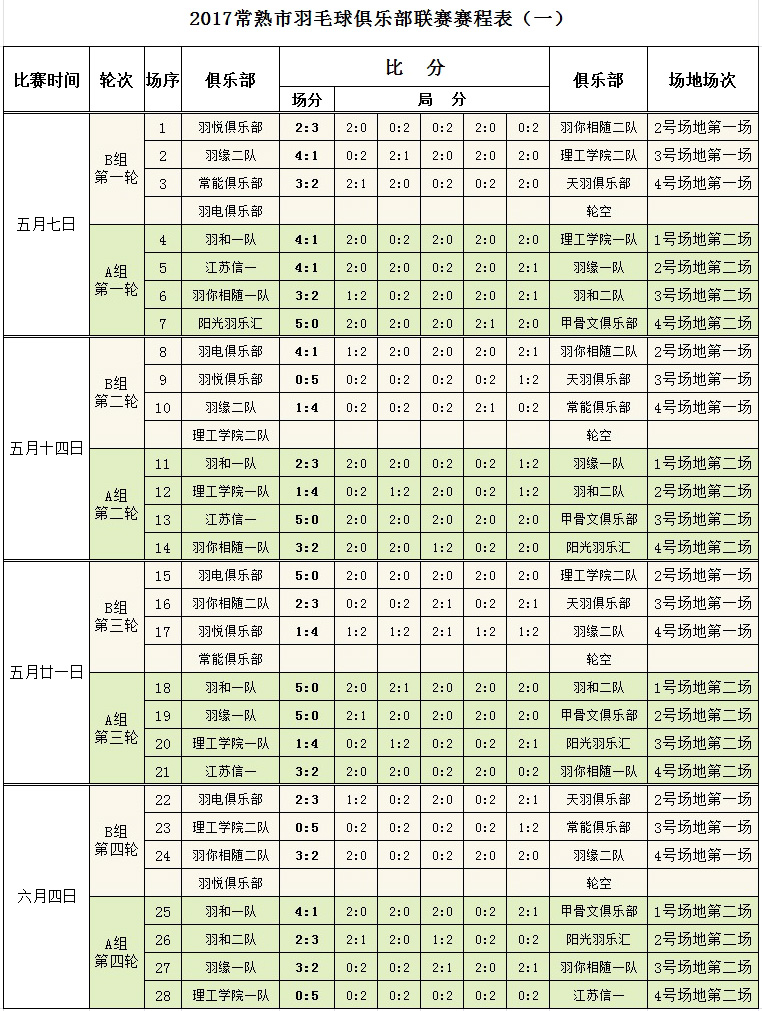 2017羽毛球俱乐部联赛成绩公告