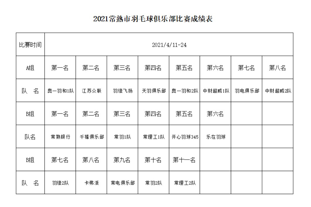 2021"光伏能源“杯常熟市羽毛球俱乐部联赛成绩表